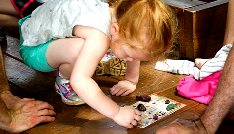 Uncover gems, crystals, minerals, and fossils from all around the world at our mining sluice at Prospector’s Creek