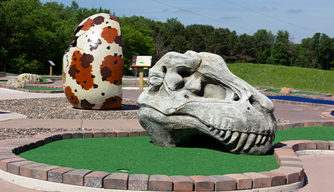 Learn about different dinosaurs, what they ate, and other fun facts along the way on our 18 hole course!